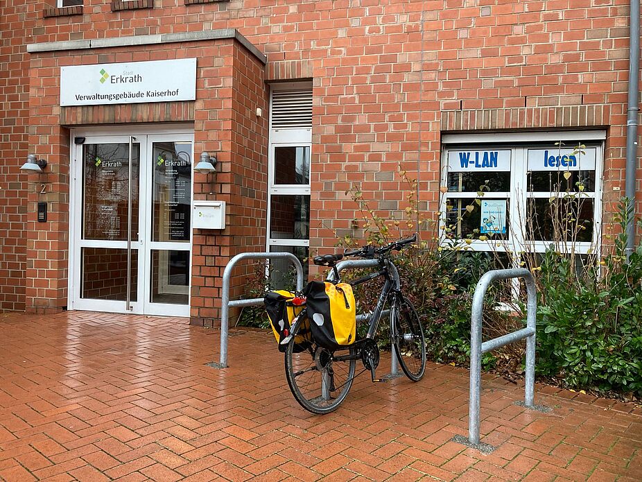Im Sommer 2021 fuhr dann der ADFC Erkrath zusammen mit der zuständigen Fachbereichsstelle der Stadtverwaltung Erkrath diese und weitere problematische Standorte im Stadtgebiet ab. Und siehe da: Neue Fahrradständer sind mittlerweile an allen vom ADFC beparkten Punkten vorzufinden. Auch an weiteren Standorten wie am Rathaus, am Toni-Turek-Stadion und vor der Caritas-Begegnungsstätte Gerberstraße. Die meisten Fahrradständer sprossen dabei nach den starken Regenfällen im September/Oktober 2022 aus dem Boden. Wo früher geschwungene Fahrradständer als „Felgenkiller“ dienten, sieht man heute Fahrradabstellsysteme, die sich durch Standfestigkeit, Anlehnmöglichkeit und Diebstahlsicherheit auszeichnen.
