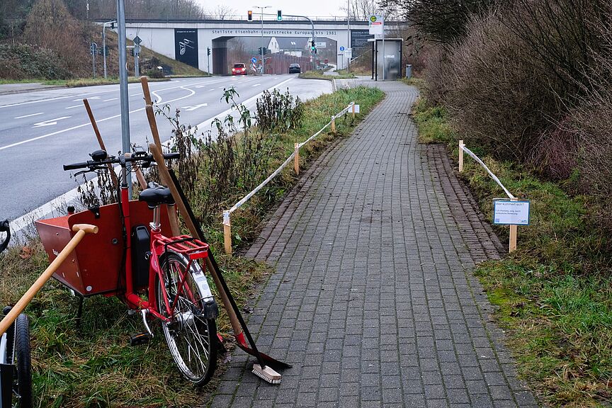 ADFC gräbt Geh- und Radweg an der Bergischen Allee aus