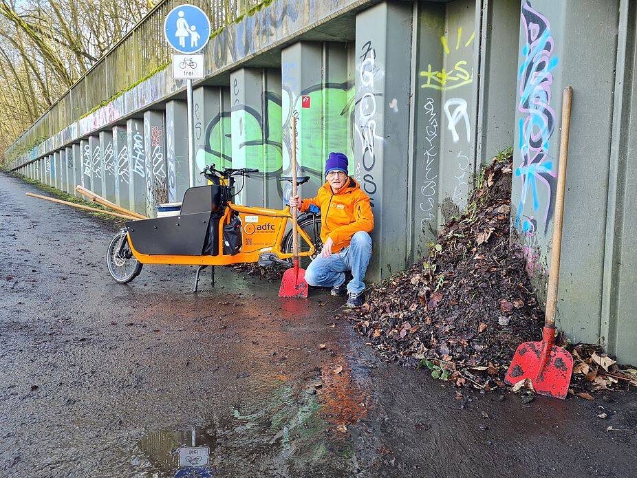"Wir verbinden diese Säuberungsaktion mit dem Wunsch an den zuständigen Baulastträger, den Fuß- und Radweg ganzjährig und in voller Breite sicher befahrbar zu halten."